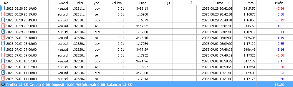 I’m going to start running trade signals. So far, the EA has been operating on an account that still includes my previous trades. Here are the last three days of its performance: