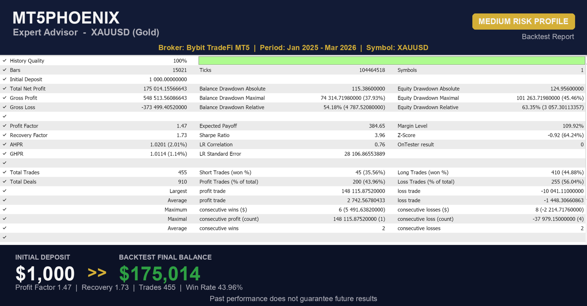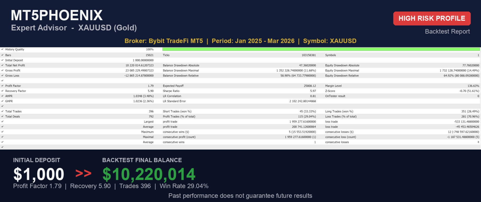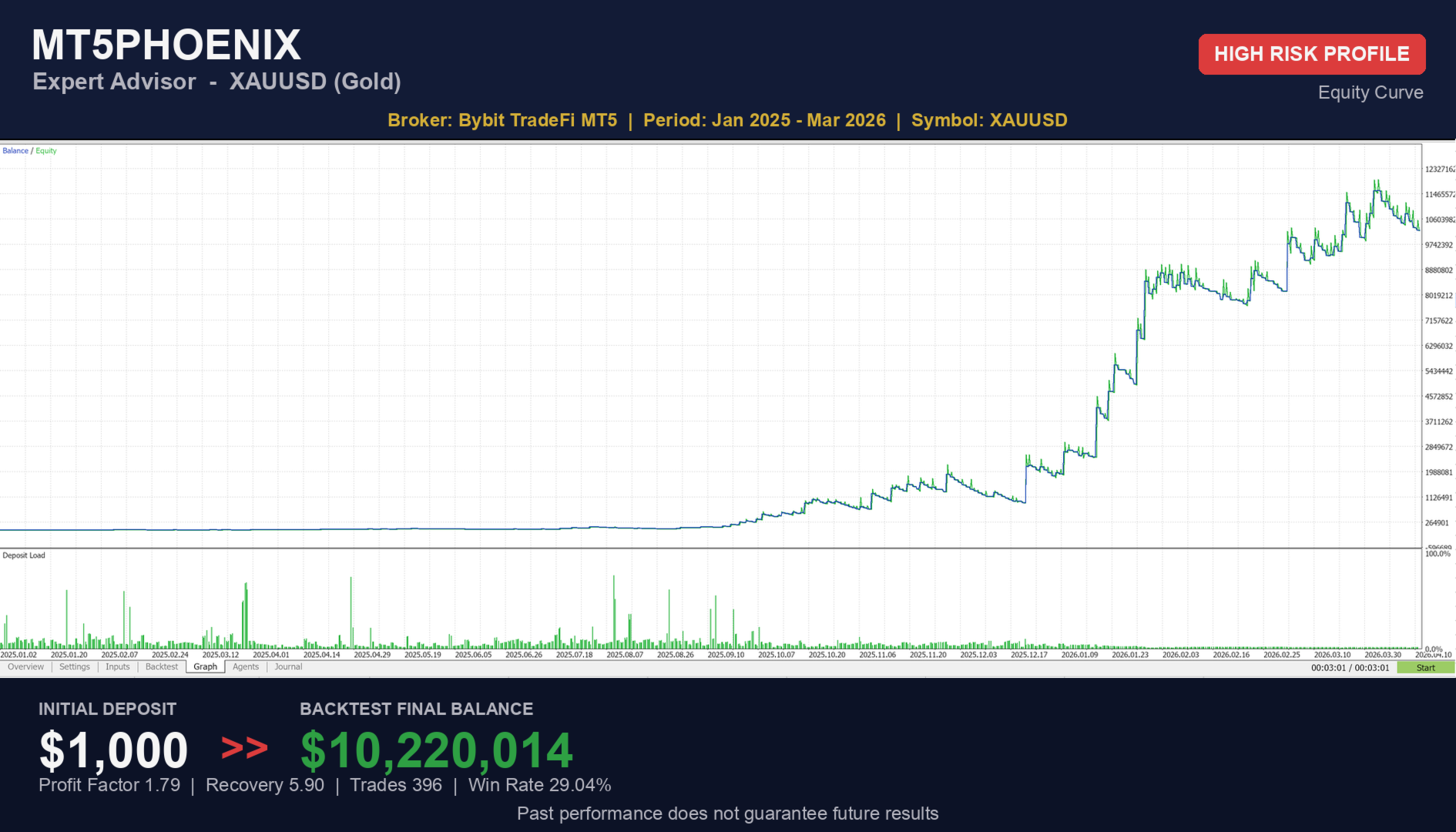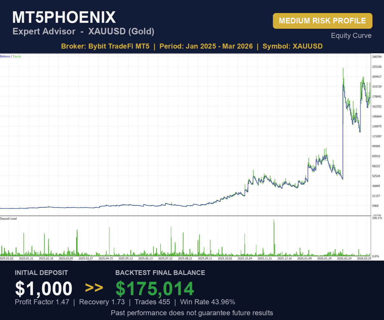 Das Live-Konto des Autors, auf dem dieser EA läuft, können Sie hier verfolgen: Phoenix XAUUSD. Das Signal läuft bei dem Broker Bybit TradeFi MT5.