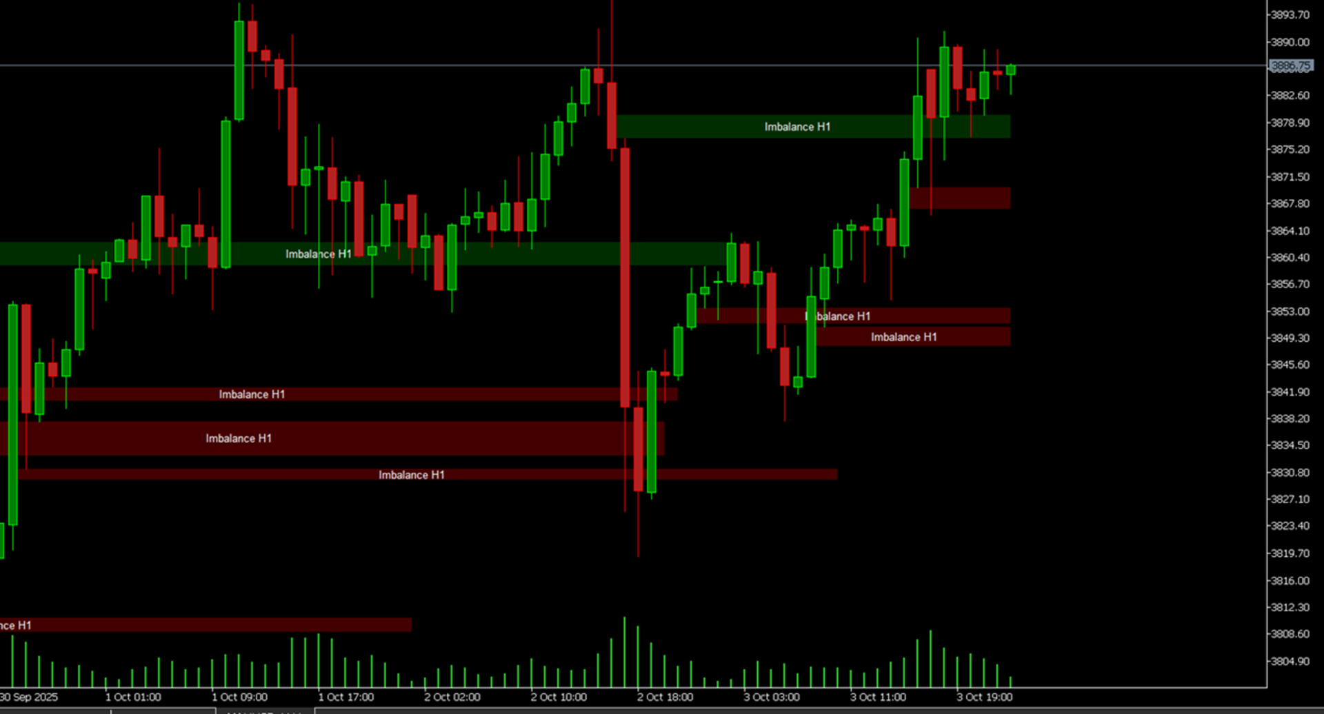Unverwechselbare Visualisierung: Sie müssen nicht mehr auf jede Kerze blinzeln. Der Indikator identifiziert und markiert automatisch Zonen mit bullischen und bearischen Ungleichgewichten. Grüne Rechtecke für Kaufzonen. Rot für Verkaufszonen. Seine Einfachheit ist genial.