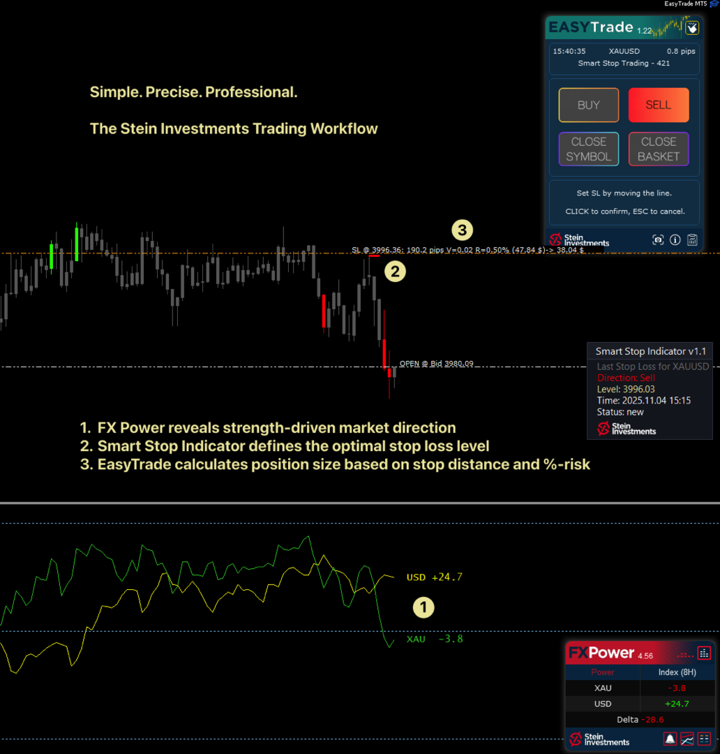Beide Tools basieren auf derselben modernen Marktstruktur- und Breakout-Logik und bilden ein einheitliches Stop-Management-System für jeden Handelsstil, jede Asset-Klasse und jeden Zeithorizont, von schnellem M1-Scalping bis zu langfristigem H4-Swing-Trading.