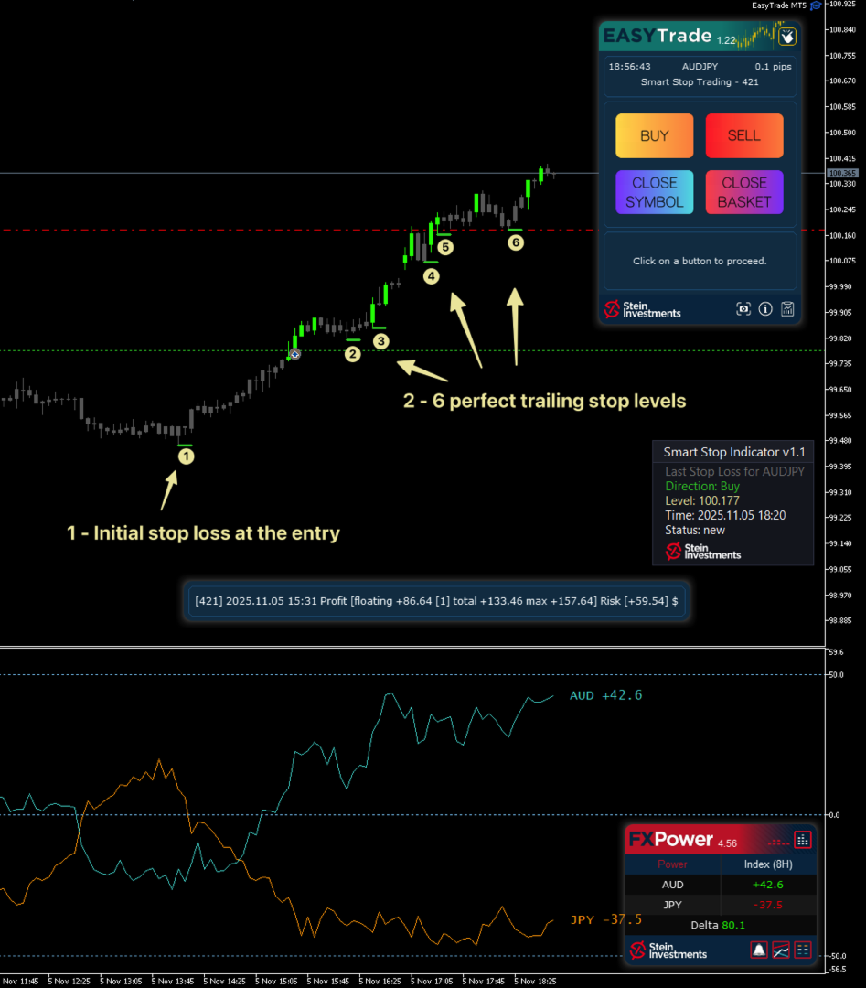 As a trader, initiating a position—whether buying or selling—is often the simplest part of the process. The real challenge begins once you're in the trade: deciding whether to hold or exit can be riddled with uncertainty and emotional bias. That’s where the Smart Stop Indicator has truly transformed my workflow in a brief period I've used it. This tool has helped me make more methodical and informed decisions under pressure. Instead of relying on gut feeling or arbitrary stop placements, the Smart Stop Indicator provides a structured, data-driven approach to managing risk. It proactively guides my exit strategy, helping me stay objective and disciplined even in volatile conditions. Just as the author described, it removes the guesswork and replaces it with clarity. For anyone serious about refining their trade management, this indicator is a must-have.