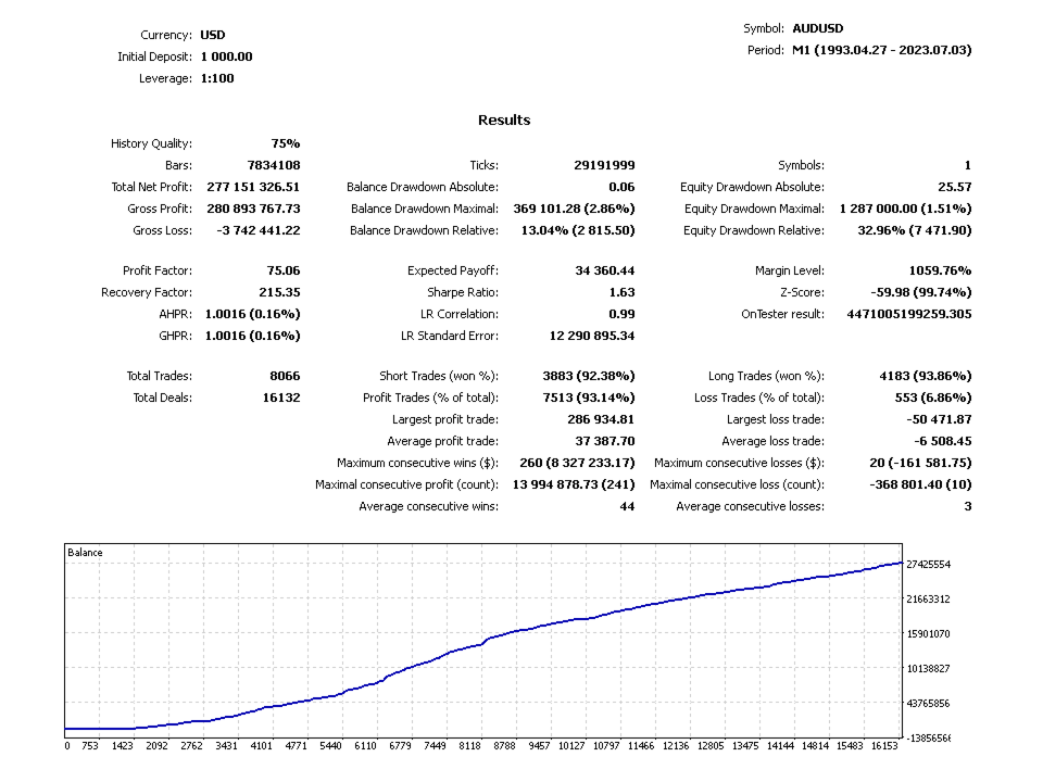 Der Berater kommt mit geprüften Vorlagen für verschiedene Paare. Dies ist ein Trend-Experte und arbeitet auf mittelfristige Trends des Forex-Marktes auf viele Währungspaare Eurusd, GBPUSD, USDJPY, AUDUSD, NZDJPY, NZDUSD, EURJPY, GBPJPY und viele andere. Dieser Berater ist in der Lage, rund um die Uhr und zur gleichen Zeit auf mehrere Währungen zu arbeiten. Nach seinem Prinzip sucht der Exotic BoT Explosion nach einem Trend mit einer ausgeprägten Ausrichtung auf dem Markt und eröffnet Positionen auf Kickbacks. Der Algorithmus verwendet weder Martingale noch andere gefährliche Methoden, so dass er für den automatisierten Forex-Handel ziemlich sicher ist.