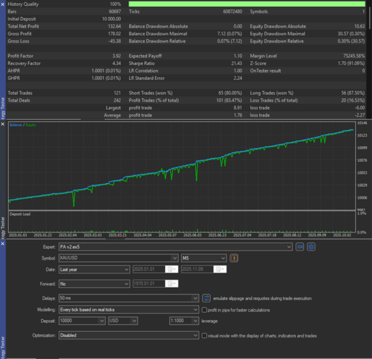 PA v2 ist ein Expert Advisor für MT5, der Händler bei der Verwaltung offener Positionen unterstützt. Er wurde hauptsächlich für manuelle Händler und Scalper entwickelt, die es vorziehen, ihre Eingänge selbst zu bestimmen, aber möchten, dass der EA das Handelsmanagement, die Durchschnittsbildung und das Trailing automatisch übernimmt. Der EA sagt weder die Kursrichtung voraus noch garantiert er Ergebnisse. Er dient als Hilfsmittel, um die Handelsabwicklung einfacher und konsistenter zu gestalten.