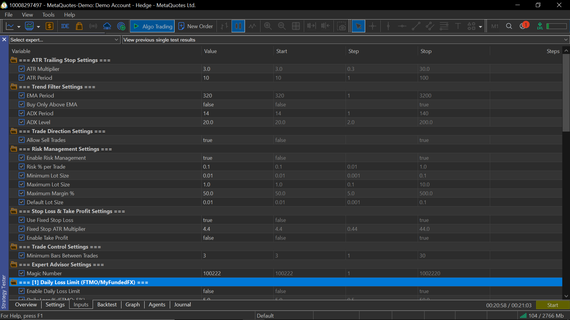 Der EA verwendet ein intelligentes ATR-basiertes Trailing-Stop-System, das sich an die Marktvolatilität anpasst. Er geht in den Handel ein, wenn der Kurs die dynamische ATR-Stopp-Linie überschreitet, und steigt aus, wenn sich der Trend umkehrt. So wird sichergestellt, dass Sie starke Trends einfangen und gleichzeitig den Drawdown minimieren.