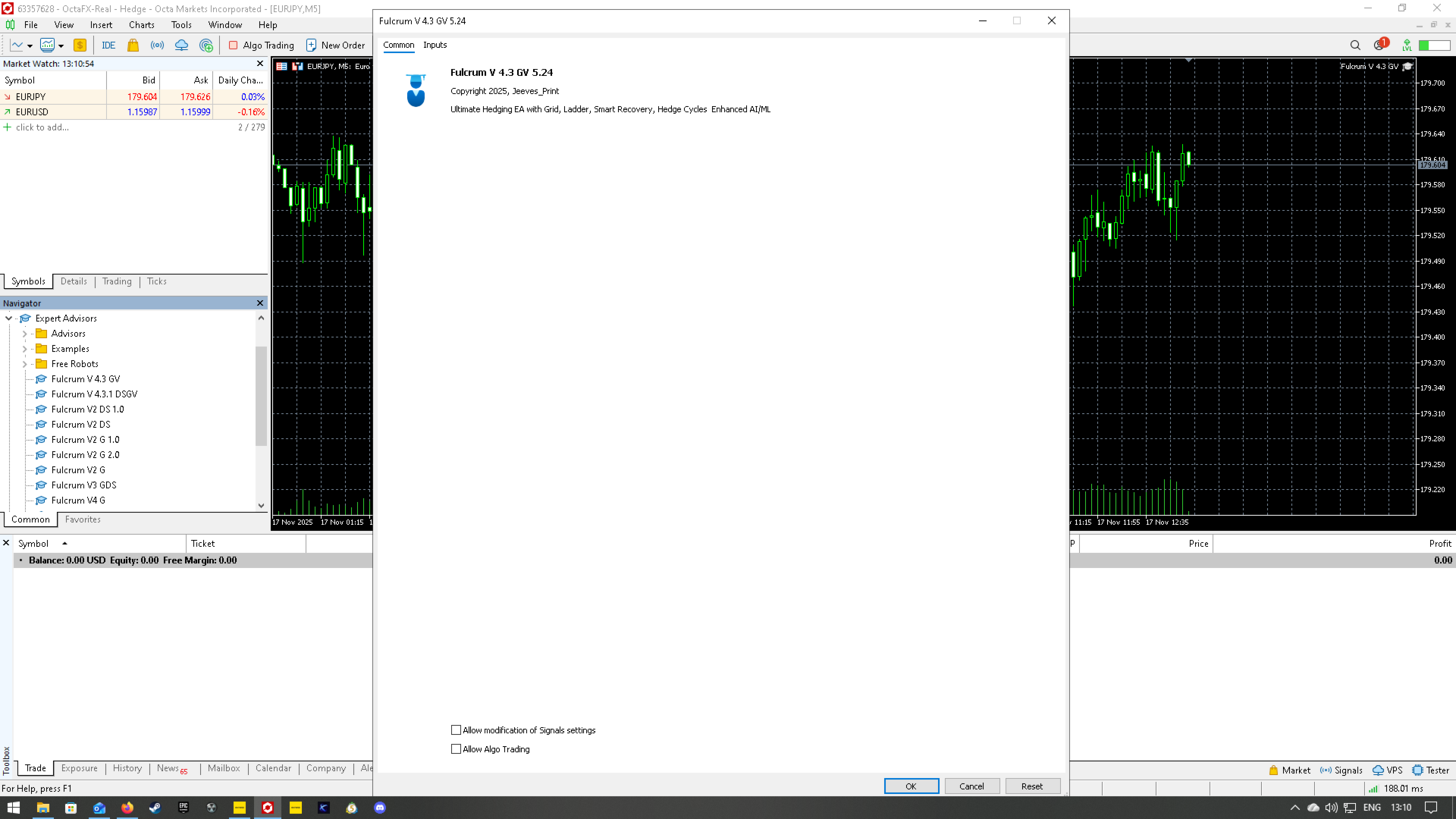 Der Fulcrum EA handelt über die Modi Grid, Ladder, Hedging, Auto und Smart Recovery.