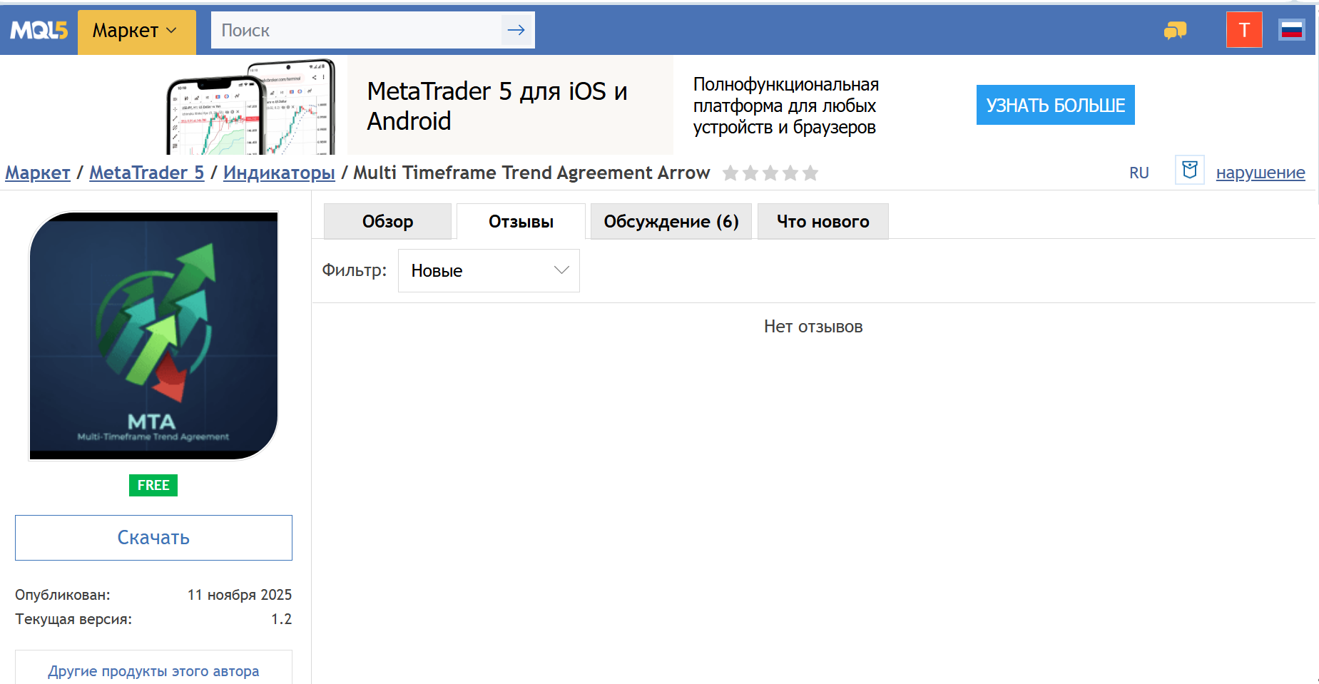 Это печально, но согласно правилам платформы MQL5 — пользователь может оставить звёздный рейтинг и официальный отзыв, только если он официально приобрёл продукт через Маркет.