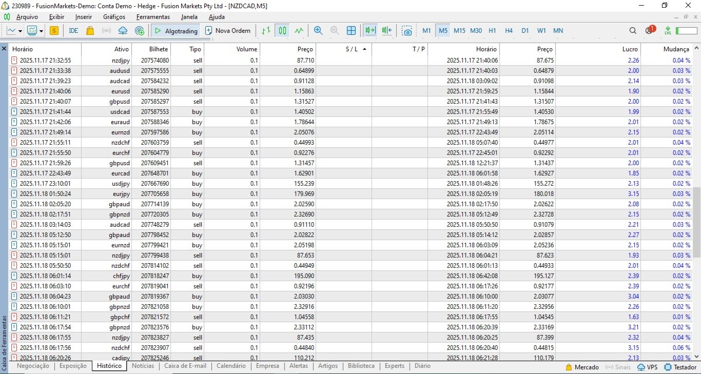 Funktioniert auf verschiedenen Forex-Paaren und Timeframes, mit Trend-Validierung auf M5 und H1 für mehr Zuverlässigkeit.