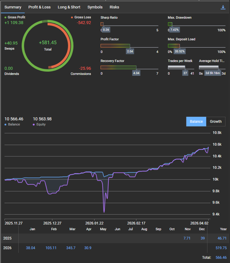 - Jede Position ist mit einem Stop-Loss versehen, so dass sie für Prop-Firm-Konten geeignet ist und das Risiko eines Kontolöschens reduziert.