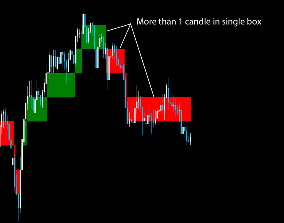 If the volume NOT ENOUGH to create the colour box, more candle will be required to create one colour trend box.