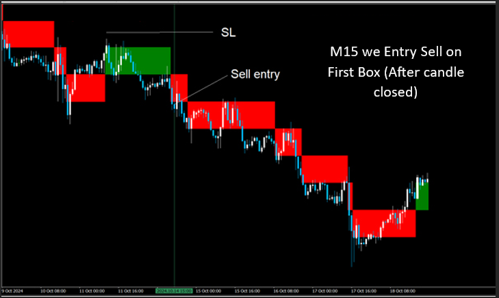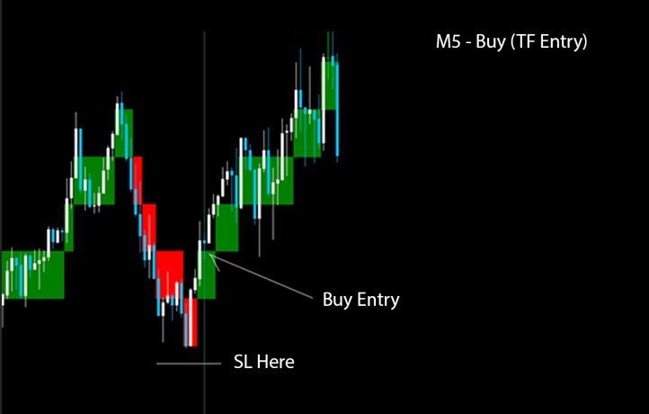 If H1 is currently Green Box, so in our Timeframe entry at M5 we only look for BUY ONLY at first GREEN BOX COLOUR