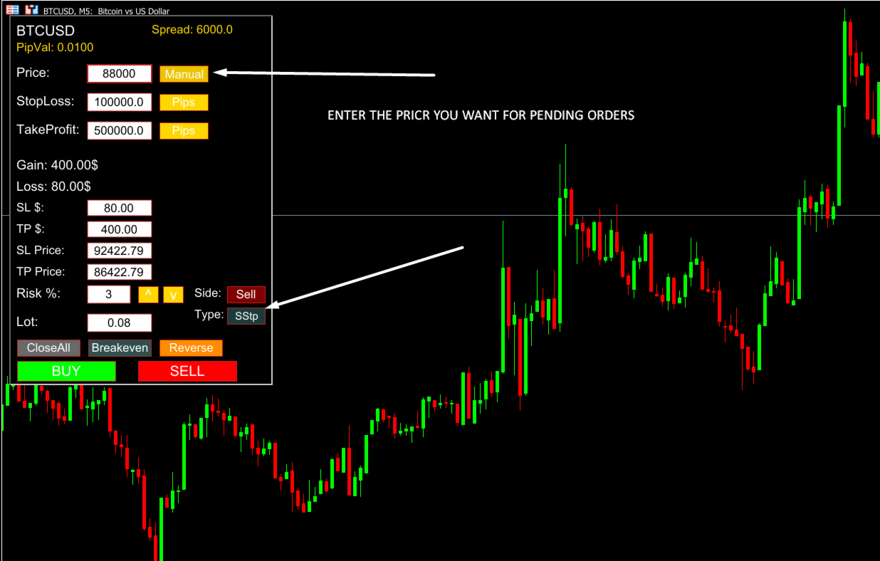 Manuell (geben Sie Ihren eigenen Preis für schwebende Aufträge ein)