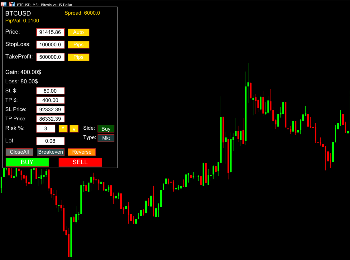 Es wurde speziell für Händler entwickelt, die Wert auf Lot-Präzision, Risikomanagement, intelligente Pending-Orders und sofortige Ausführung legen - alles in einer übersichtlichen und intuitiven Oberfläche.