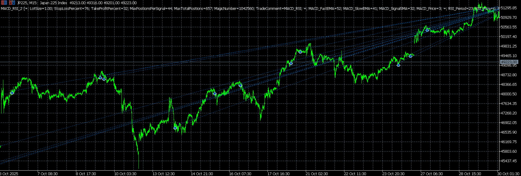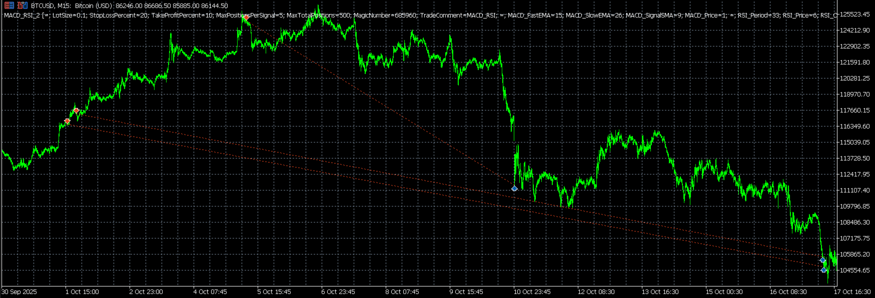 Strategieübersicht: Der EA überwacht den Markt auf Konvergenz-/Divergenzsignale. Ein Handel wird typischerweise ausgelöst, wenn der MACD eine neue Trendbildung anzeigt, aber nur, wenn der RSI bestätigt, dass die Bewegung genügend Schwung hat und sich nicht in einer extrem überkauften oder überverkauften Zone befindet (abhängig von den Einstellungen).
