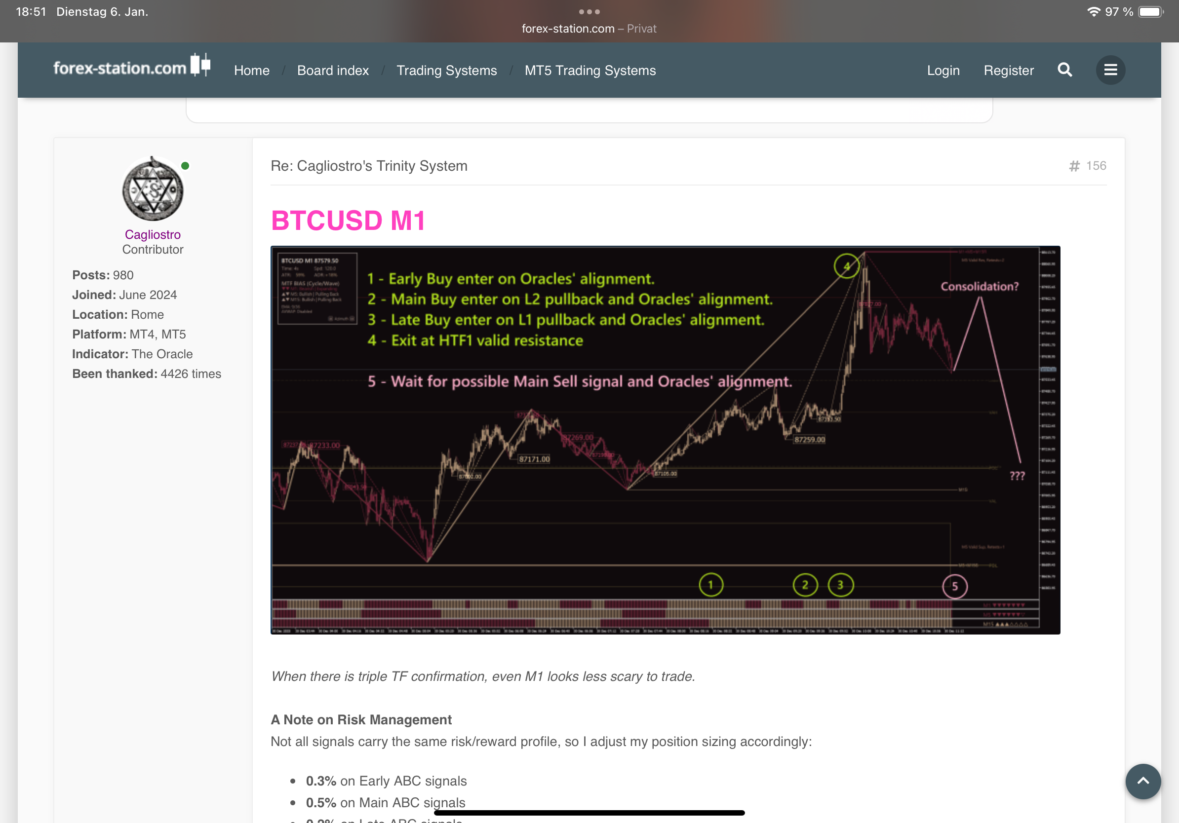 What matters for trading is the entry methodology: