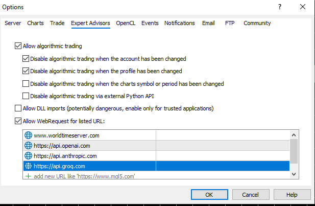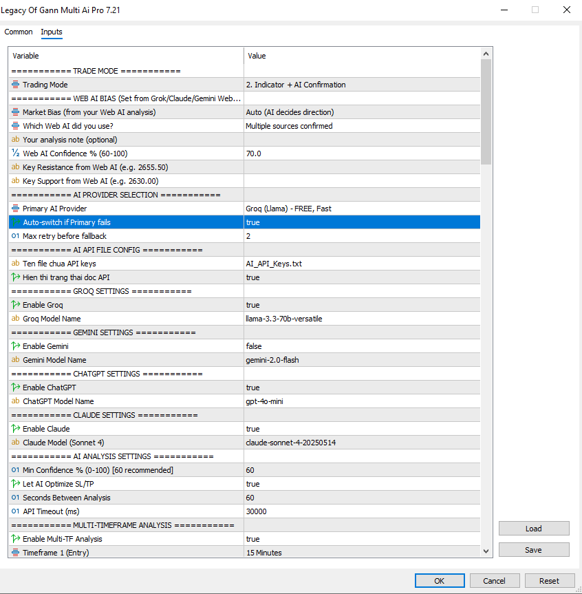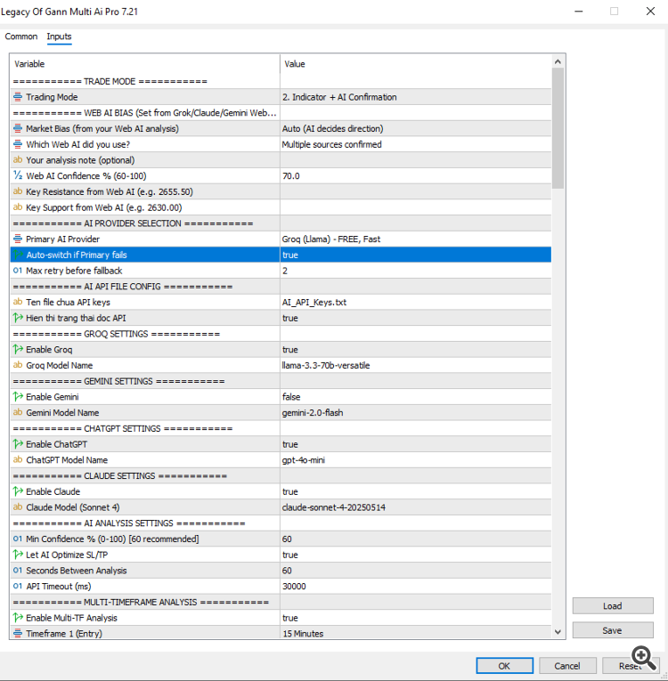 I have all Groq, Claude and ChatGPT enabled as true in the EA.