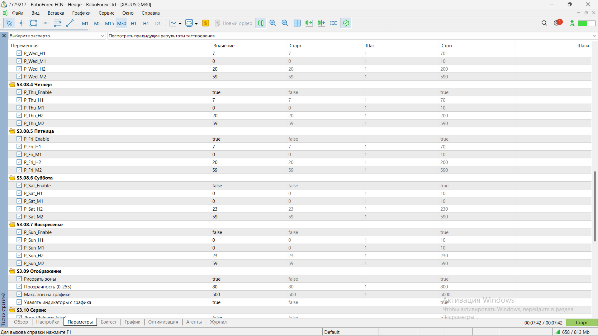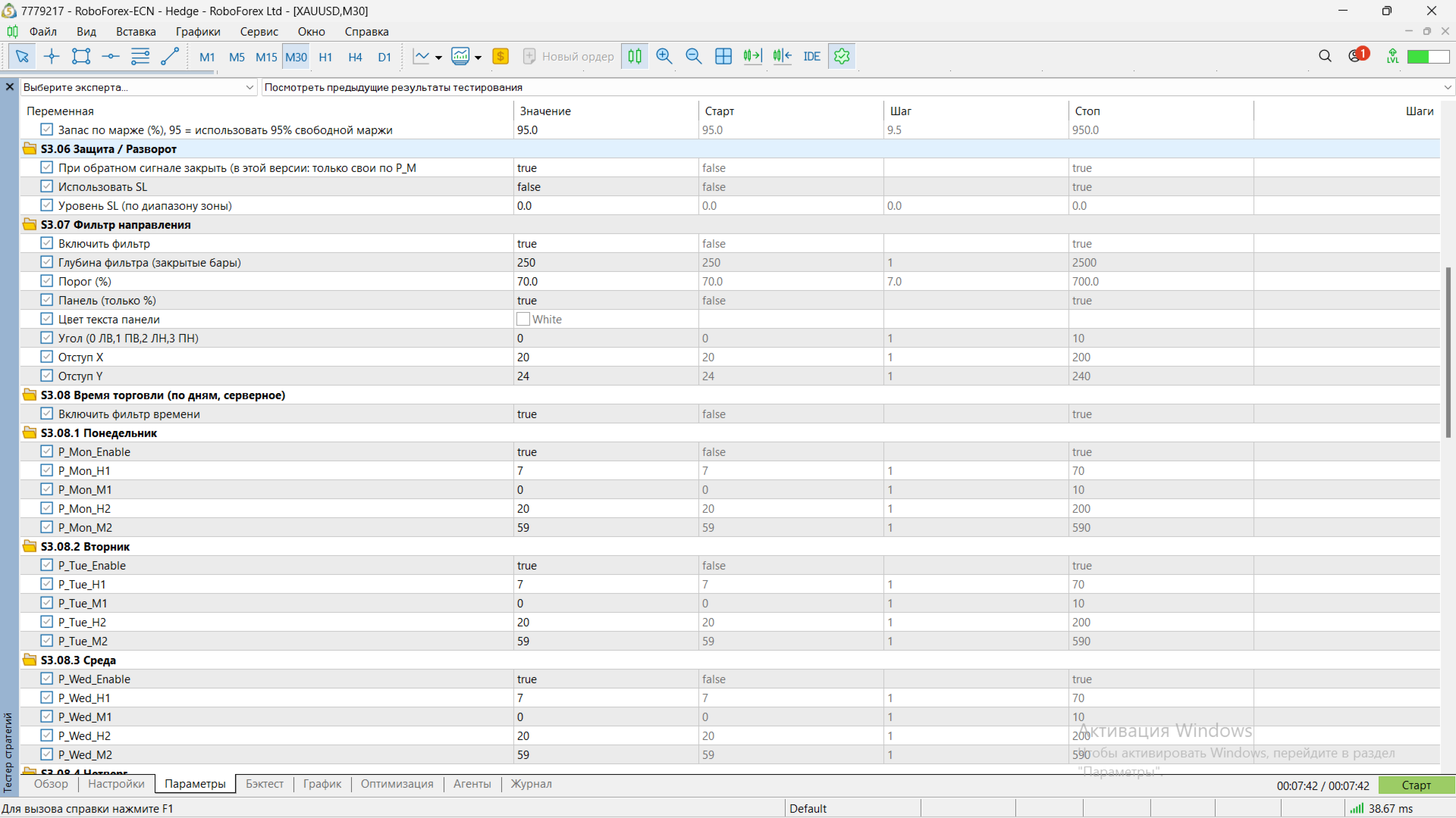 Einige der Eingabeparameter haben neutrale Namen, um den Algorithmus zu schützen und ein direktes Kopieren der Einstellungen/Logik zu verhindern.