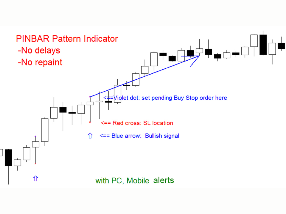 - Der Indikator „PINBAR-Muster“ ist ein sehr leistungsstarker Indikator für Price Action Trading.