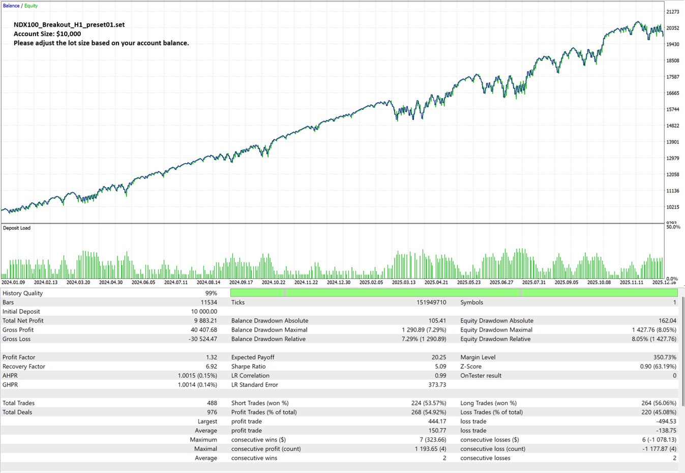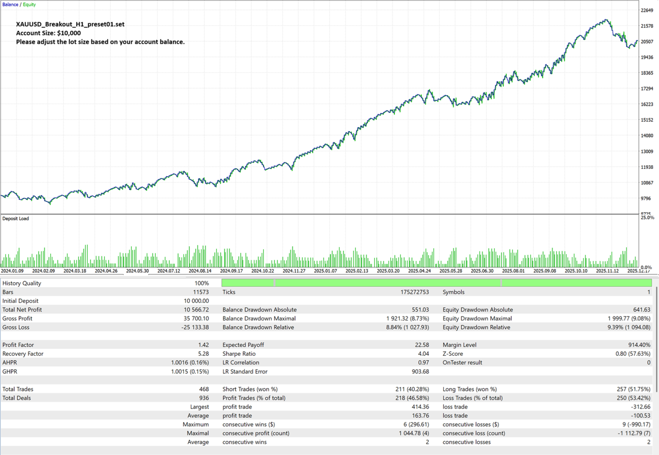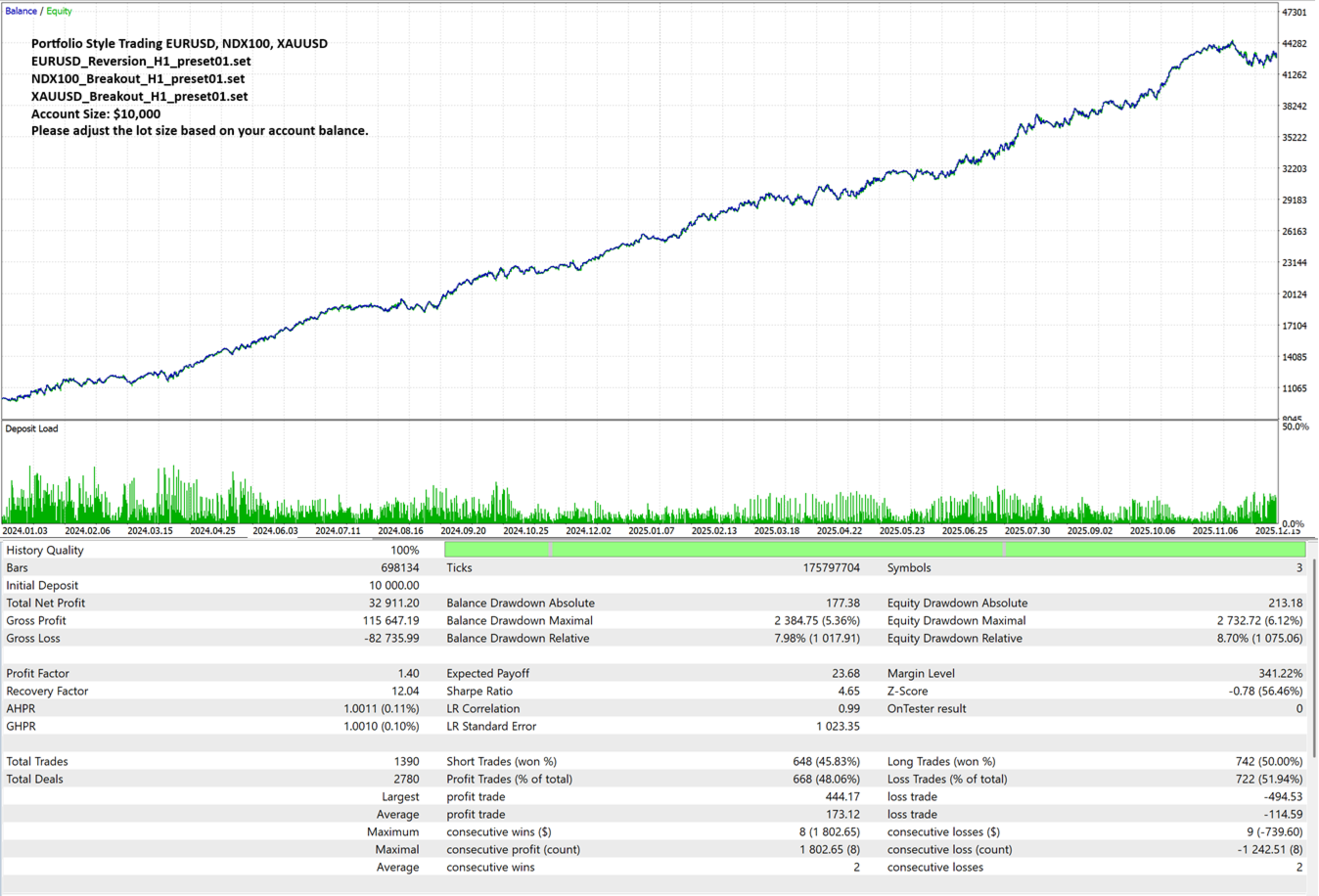 Range Cycle Pro identifiziert automatisch eine dynamische Preisspanne während eines benutzerdefinierten Zeitfensters und führt Trades basierend auf dem realen Marktmomentum aus. Händler können das System an verschiedene Märkte - wie Gold (XAUUSD), US100 und EURUSD - anpassen, um einen portfoliobasierten Handelsansatz aufzubauen, anstatt sich auf ein einzelnes Symbol oder eine Strategie zu verlassen.