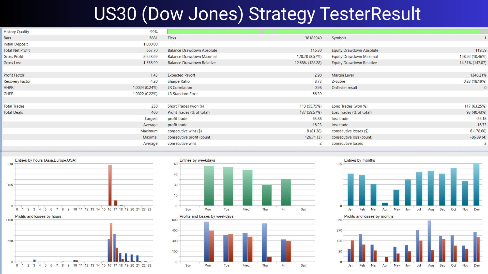 Öffnen Sie den US30-Chart(H1 Timeframe) und hängen Sie den EA an.