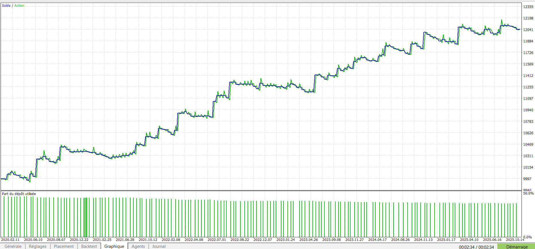 Der EA filtert schwankende und minderwertige Marktbedingungen heraus und geht nur dann Trades ein, wenn die Wahrscheinlichkeiten günstig sind.