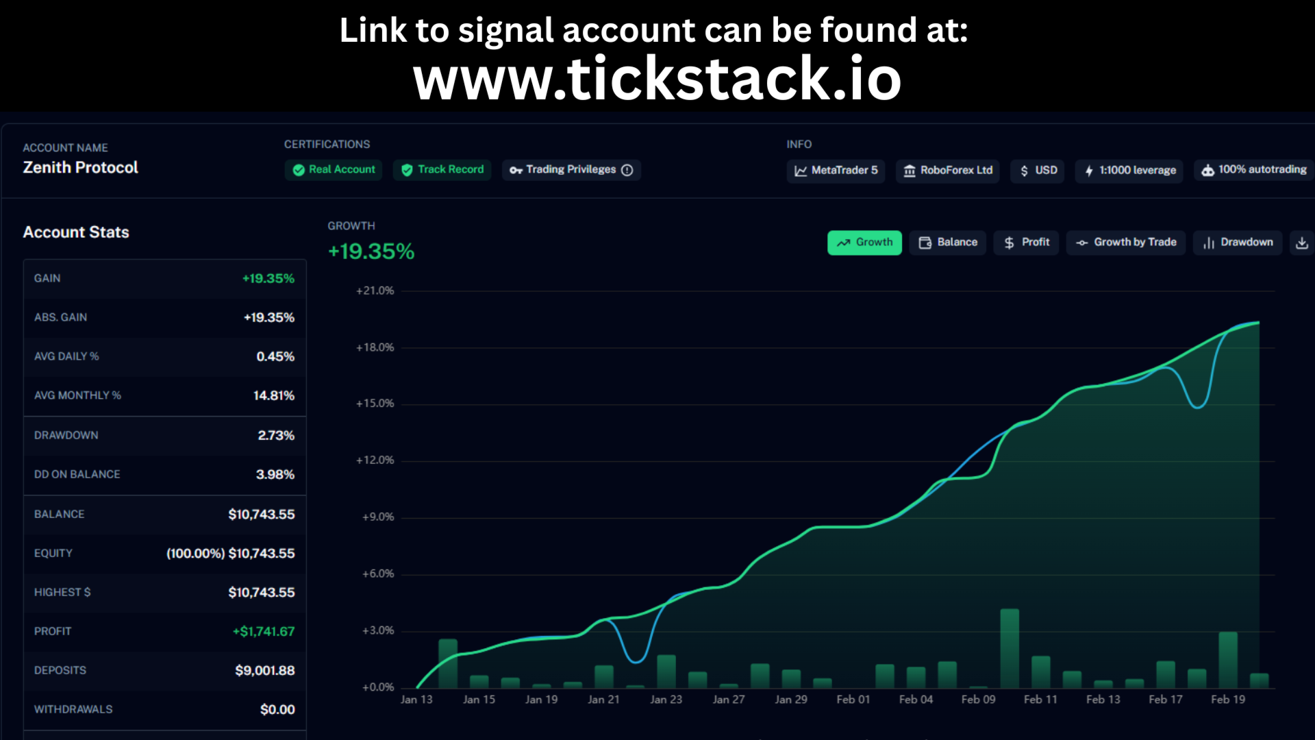 Zenith Protocol ist ein hochaktives System. Unter normalen Marktbedingungen handelt es jeden Tag und führt häufig mehrere Trades pro Sitzung aus - an Tagen mit hoher Aktivität können es bis zu 20 Trades sein. Diese konstante Aktivität bedeutet, dass die Strategie schnell eine aussagekräftige Handelshistorie generiert, die Ihnen echtes statistisches Vertrauen in ihre Leistung gibt, anstatt Monate auf eine relevante Stichprobengröße zu warten.