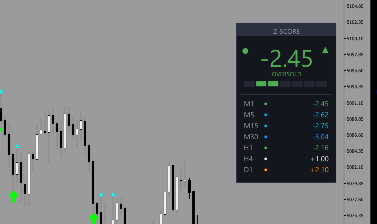 - Multi-Zeitrahmen-Analysten: Vergleichen Sie Z-Score-Werte über verschiedene Zeitrahmen, um Konfluenzzonen und stärkere Umkehr-Setups zu finden