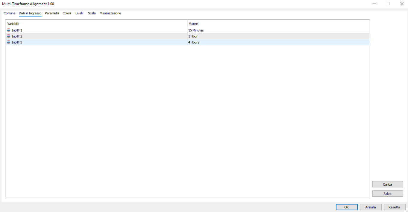 Die analysierten Zeitrahmen sind nicht fest vorgegeben, sondern werden vom Nutzer entsprechend seinem Handelsstil gewählt. Um eine aussagekräftige und sinnvolle Ausrichtungsanalyse zu erhalten, wird empfohlen, Zeitrahmen zu wählen, die nicht zu weit voneinander entfernt sind und derselben zeitlichen Ebene angehören.