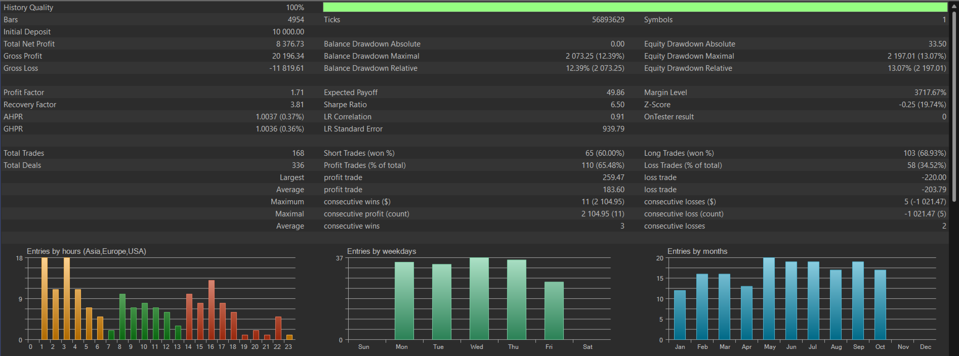 Genauigkeit, der Sie vertrauen können Machen Sie sich keine Sorgen über gefälschte Backtests. Alle Ergebnisse für diesen EA werden mit "Every tick based on real ticks" generiert . Dies ist der qualitativ hochwertigste Test, den es gibt, was bedeutet, dass die Leistung, die Sie sehen, genau den realen Marktbedingungen entspricht.