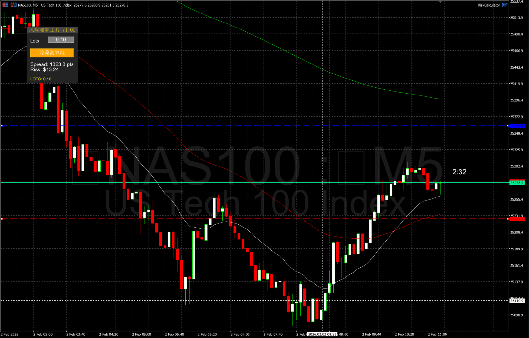- Dynamische Berechnung in Echtzeit: Durch die Unterstützung des freien Ziehens von Entry/SL-Linien berechnet das System sofort und genau den Spread und den entsprechenden Risikobetrag, wobei die Berechnungsergebnisse in Echtzeit und synchron aktualisiert werden, was die tatsächliche Risikoexposition jeder Transaktion genau widerspiegelt.