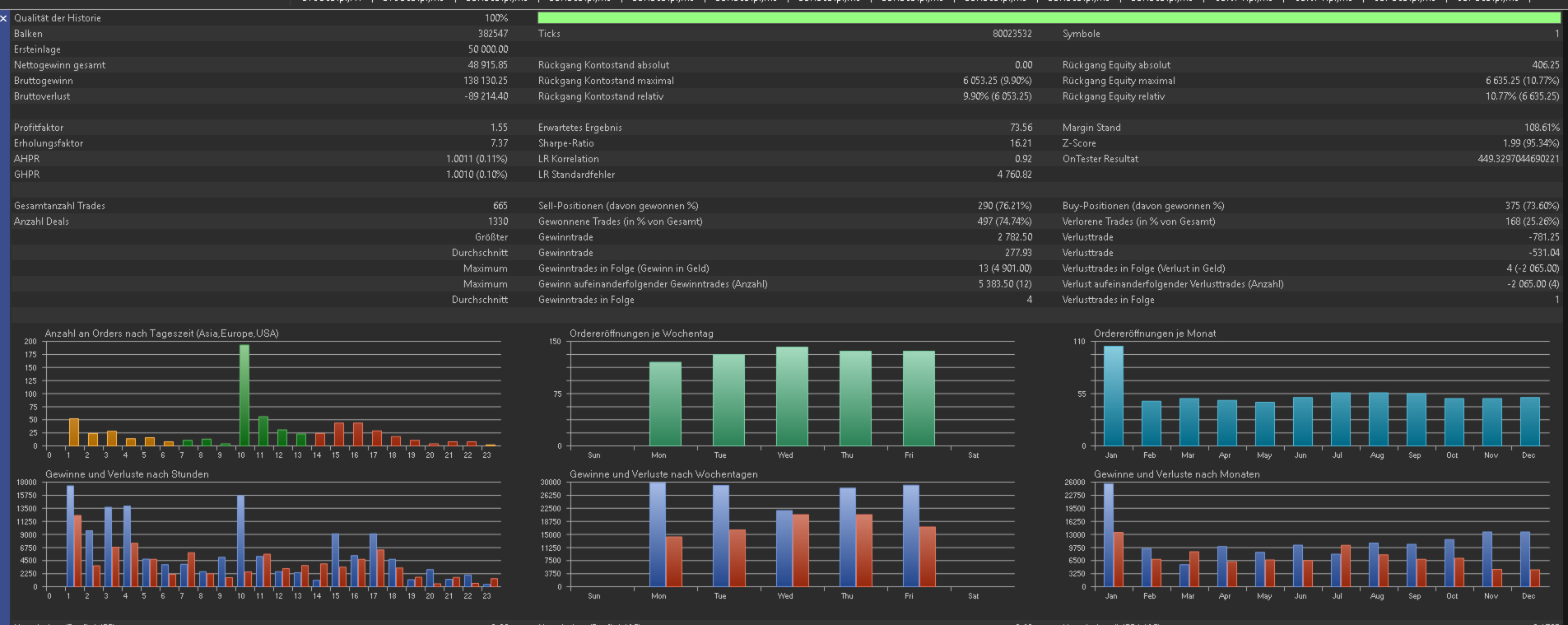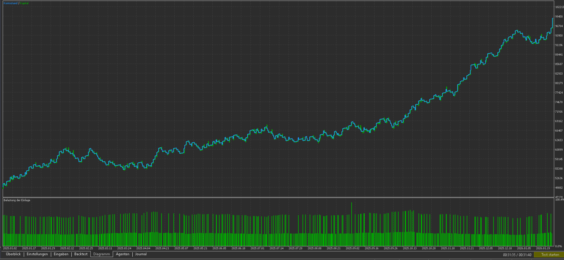 - Kapitalschutz: Setzen Sie eintägliches Verlustlimit ( z.B. 3%) und einGesamtgewinnziel. Wenn die Limits erreicht werden, schließt der EA alle Trades und stoppt für den Tag.