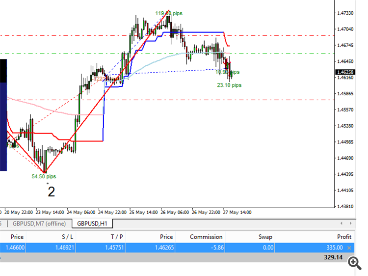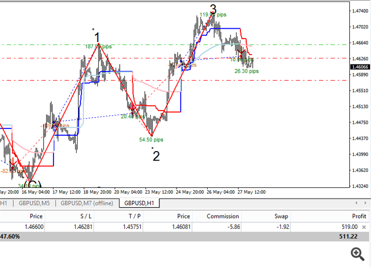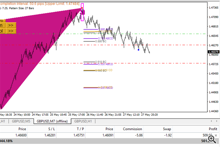 Note that this is a combined strategy between Eliott Wave trend and Harmonic Pattern plus and real time renko.
