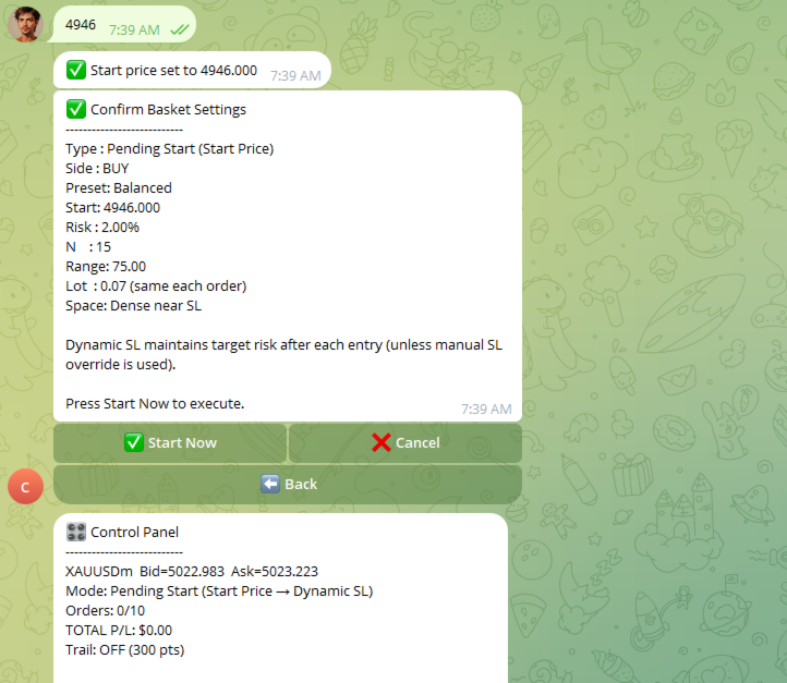 Der erste Handel wird sofort eröffnet, das Raster erweitert sich mit dynamischer SL-Kontrolle.