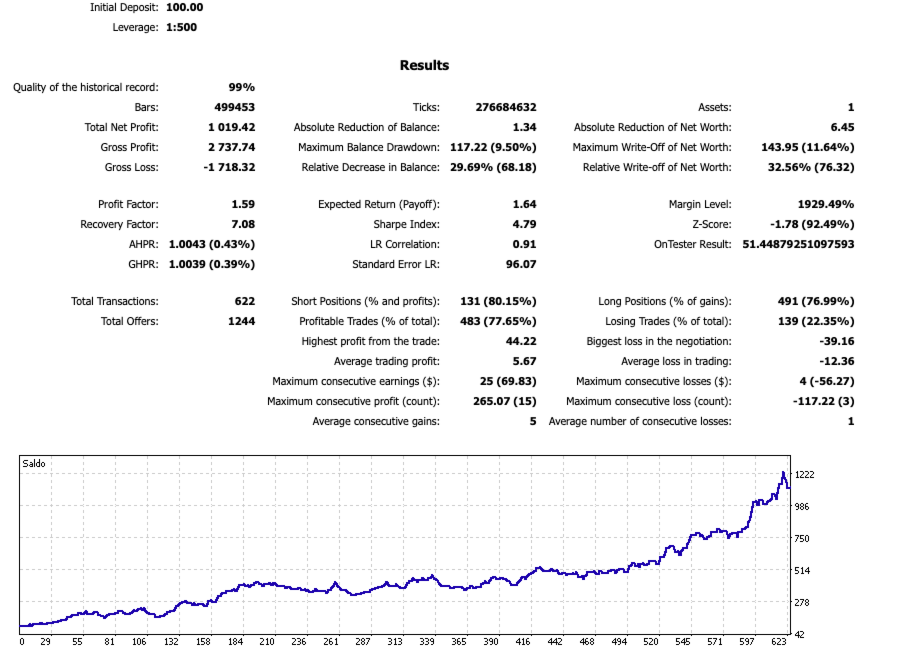 - Während die Strategie immer einen Stop-Loss verwendet, hängt ihre Ausführung von den Marktbedingungen und den Richtlinien Ihres Brokers ab (Slippage, Requotes).