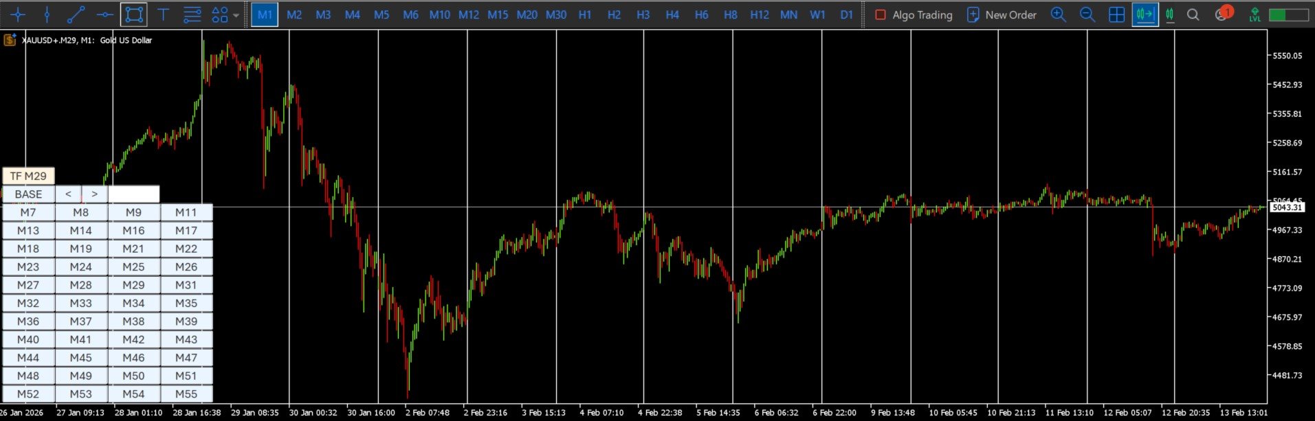 Viele Strategien erfordern Analysen auf nicht standardmäßigen Zeitrahmen, die MT5 nicht standardmäßig bietet. Das manuelle Erstellen und Umschalten zwischen synthetischen Charts ist langsam und ineffizient.