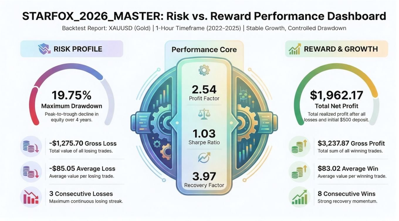 Die Architektur von STARFOX zeigt, dass der Erfolg im quantitativen Handel nicht von der Vorhersage, sondern von der Diskretisierung der Marktbedingungen abhängt. Durch die Kombination der chirurgischen Präzision des RSI Hooks mit der Flusserfassung des RSI-50 Cross gleicht das System Frequenz und Win-Rate aus.