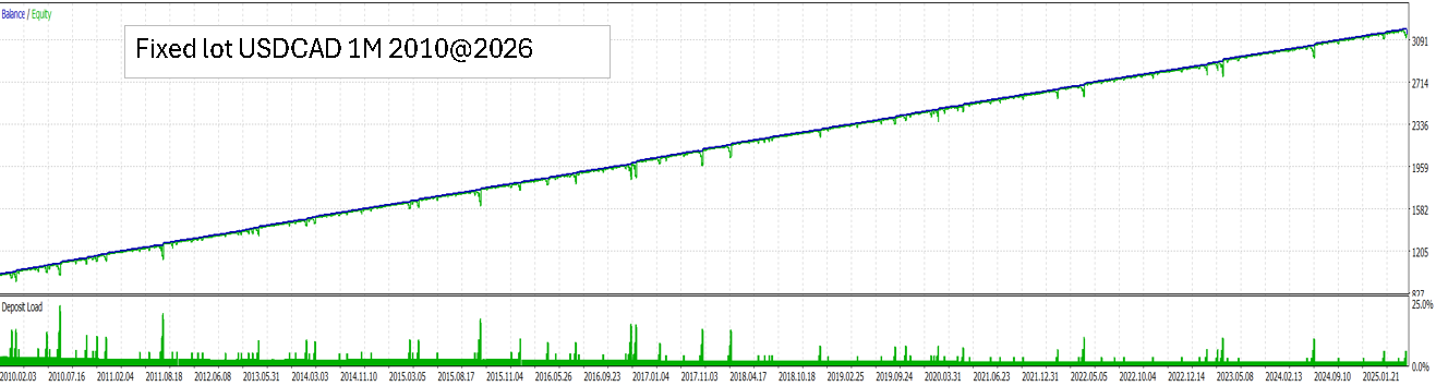 Please try the set file for USDCAD, 1M timeframe (wich is the default set file), from 2010 to 2026. Results from the past do not guarantee future results.