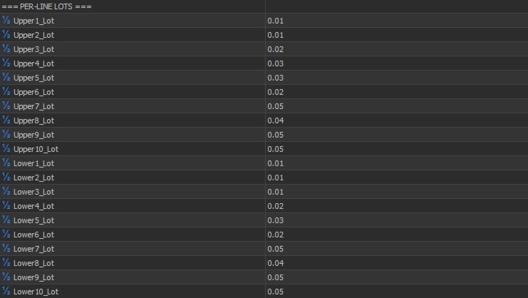 Führt einen konfigurierbaren Satz von preisbasierten Orderebenen aus. Unterstützt bis zu 20 vordefinierte Interaktionsebenen - 10 obere (Verkauf) und 10 untere (Kauf) - mit unabhängigen Abständen und unabhängigen Losgrößen pro Ebene. Erstellen Sie einheitliche, progressive, regressive oder vollständig asymmetrische Auftragsnetz-Konfigurationen. Optionale strukturelle Verriegelung, während die Aggregation aktiv ist. Regelmäßige Rekalibrierung auf der Grundlage von Referenzberechnungen hält das Netzwerk auf die aktuelle Preisstruktur abgestimmt.
