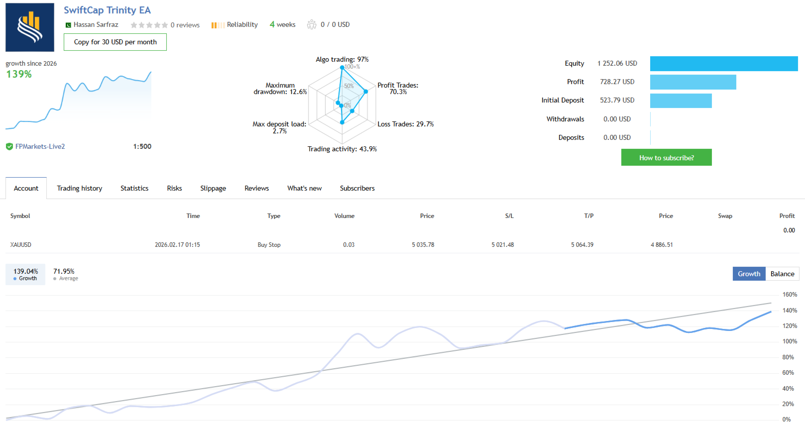 SwiftCap Trinity EA ist ein Multi-Strategie-Expert Advisor, der drei unabhängige Handelssysteme in einem einheitlichen und strukturierten Framework vereint. Anstatt sich auf eine einzelne Marktbedingung zu verlassen, ist Trinity so konzipiert, dass er sich anpasst. Das Ergebnis ist ein ausgewogenerer, strukturierterer und konsistenterer automatisierter Handelsansatz.