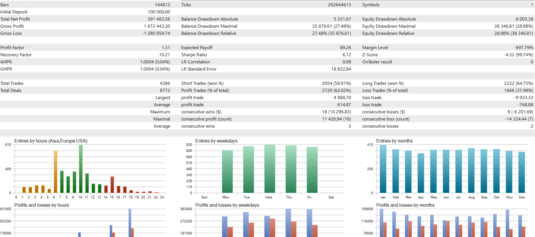 Dieser Expert Advisor (EA) wurde speziell für Broker entwickelt, die mit der Serverzeit GMT+2 / GMT+3 arbeiten. Die Performance kann in anderen Zeitzonen abweichen, da einige Strategien zeitbasiert sind.