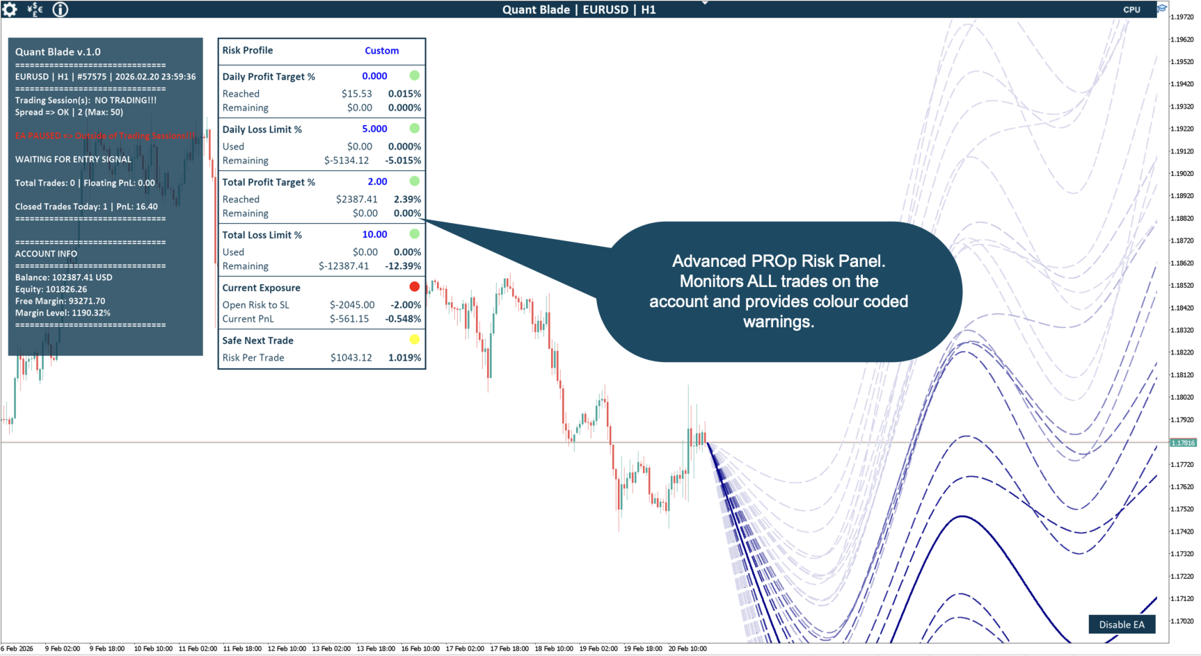 - Prop Firm Ready => erweiterte PropFirm-Risikopanels mit farbkodierten Warnungen und Empfehlungen