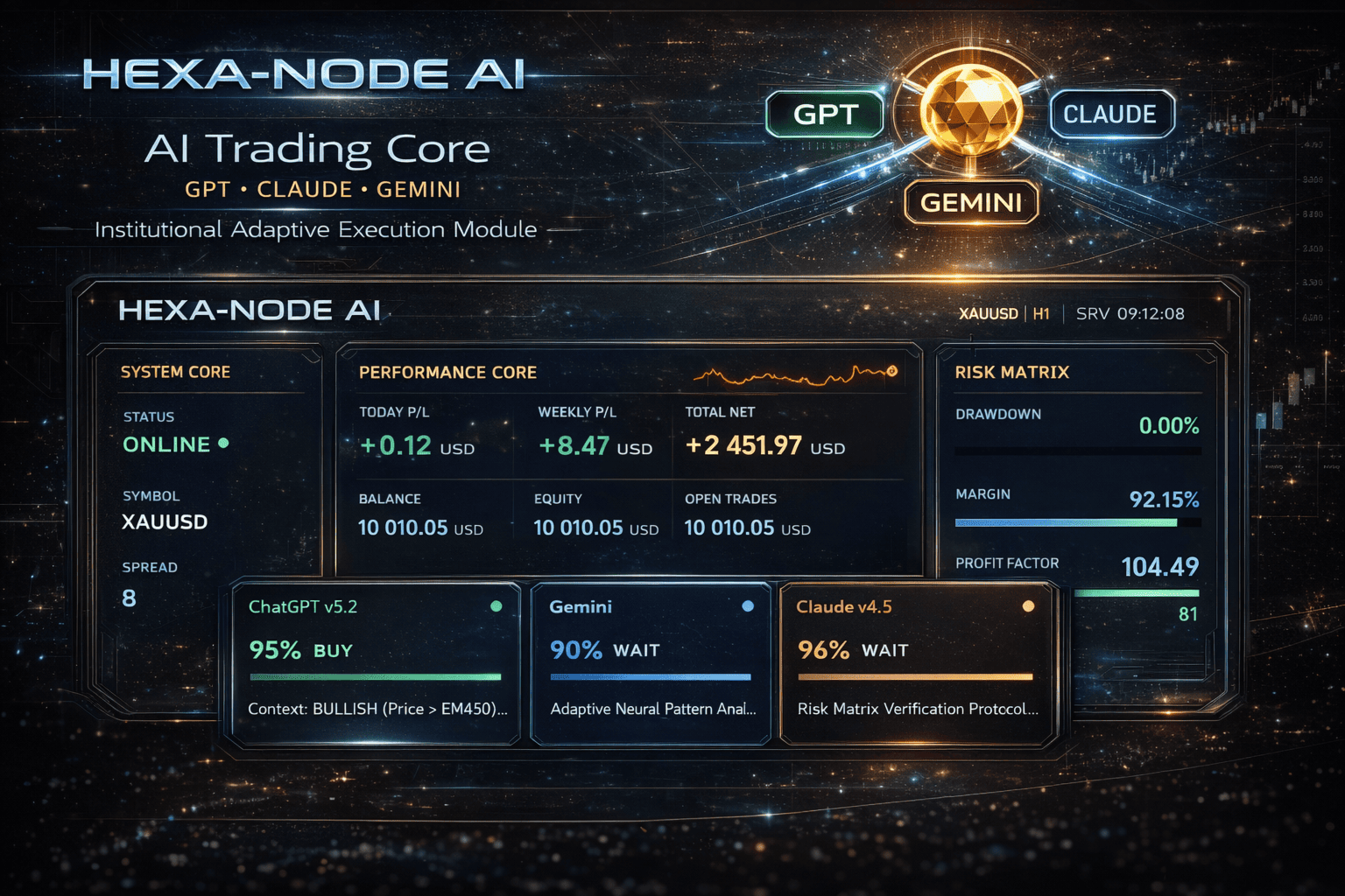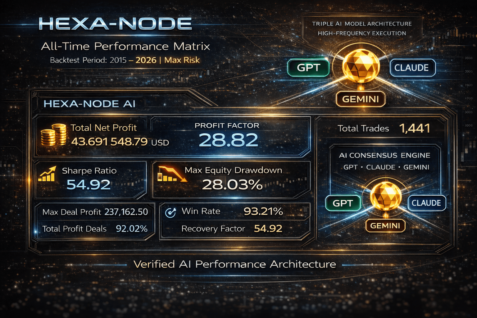 Hybrid-Intelligenz-Technologie (Triple-KI-Kern) Anstelle von Standard-Indikatoren nutzt Hexa-Node die verteilte Rechenleistung der weltweit drei führenden neuronalen Netzwerkarchitekturen: