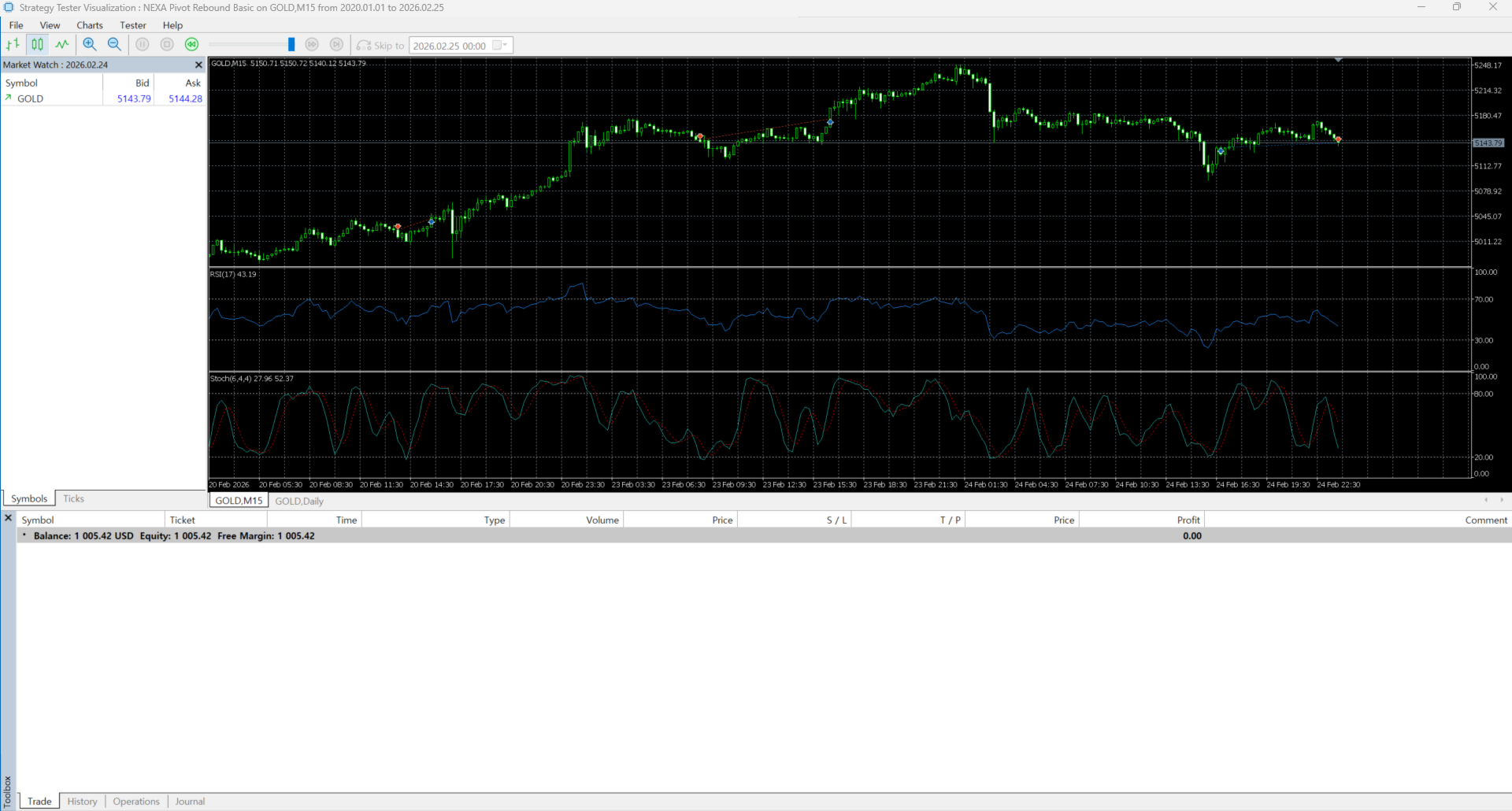 NEXA Pivot Rebound Basic ist ein Expert Advisor zur Identifizierung möglicher Kursumkehrungen in der Nähe der täglichen Pivot-Level (S1 und R1).