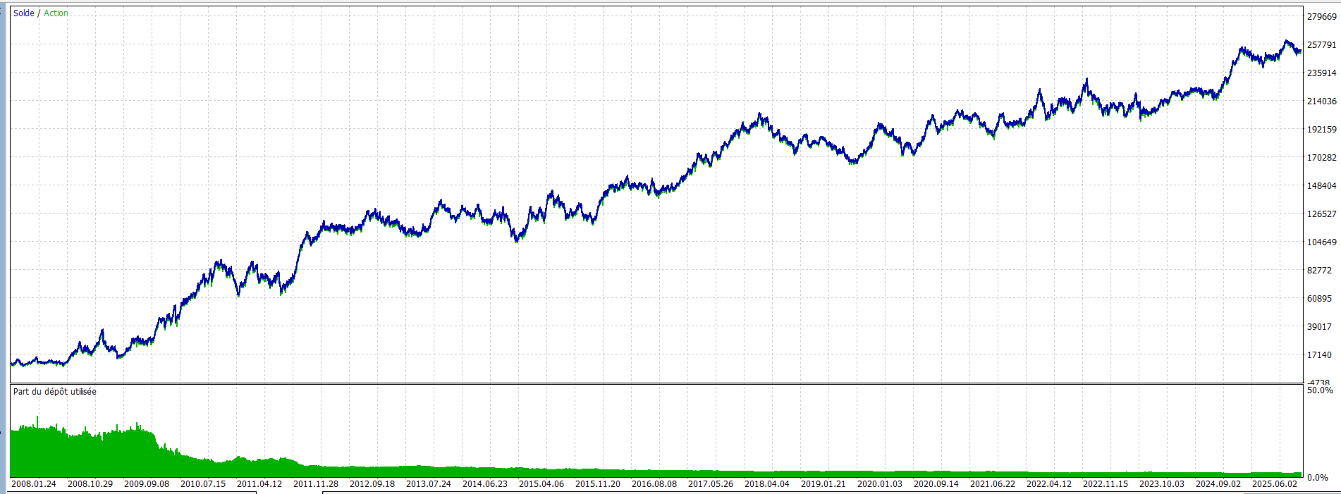 - **Margin Check** : Bevor eine Order gesendet wird, vergewissert sich der EA, dass eine ausreichende freie Marge vorhanden ist; ist dies nicht der Fall, reduziert er automatisch das Volumen, um die Order auszuführen.