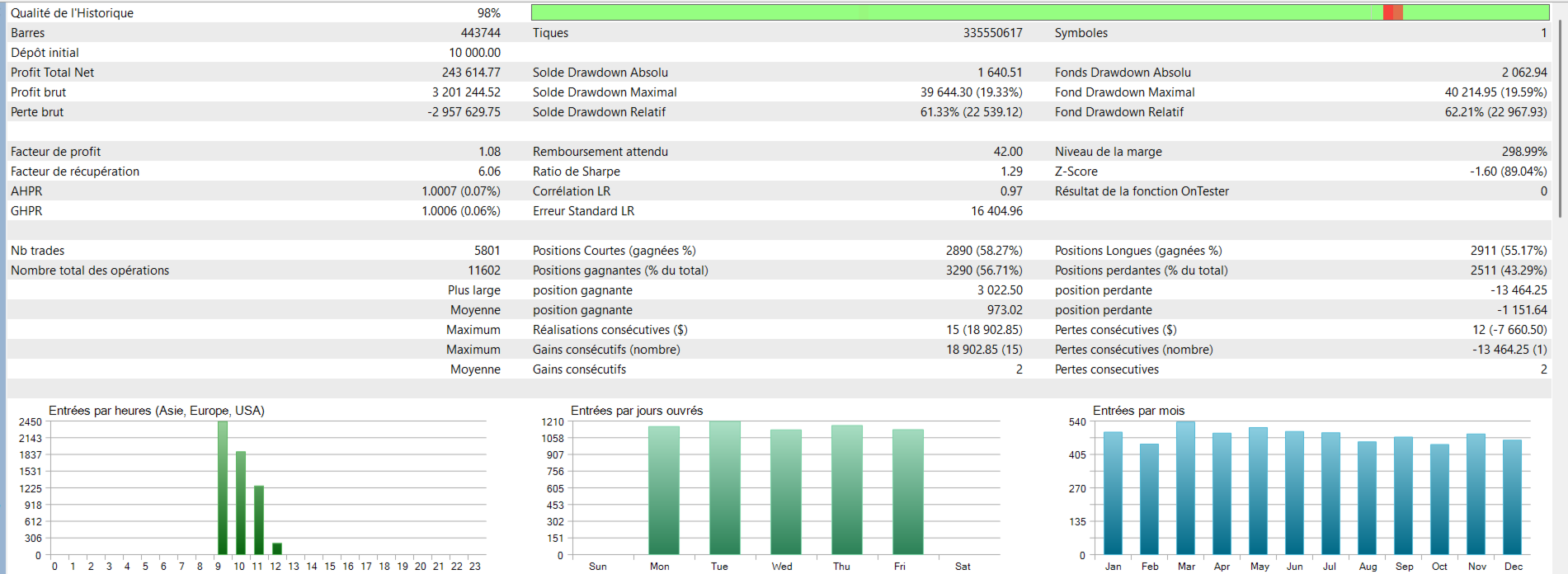 - **Kompatibilität mit mehreren Instrumenten**: Funktioniert dank einer universellen Punktwertberechnung mit allen Symbolen, obwohl die Standardparameter für EURUSD M15 optimiert wurden.