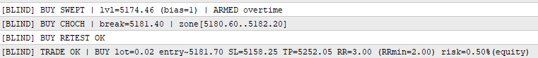In other words, the EA is working correctly. The setup was detected, but the final safety validation did not allow the trade to be opened.