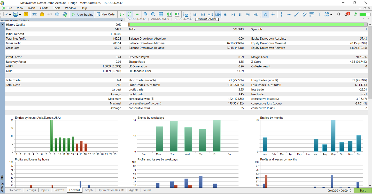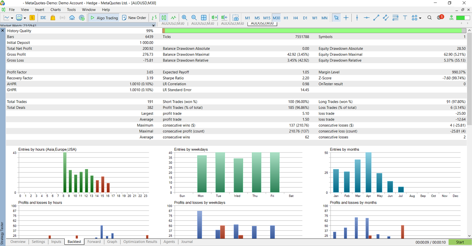 CandleStreak Basic - Backtest - AUDUSD - 30M - 01/01/2024 Standardeinstellungen