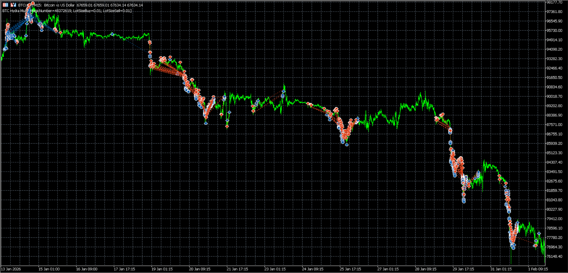 - Broker-kompatibel: Funktioniert mit jedem Broker, der BTCUSD anbietet (Hebelwirkung 1:2000 für optimale Leistung empfohlen)
