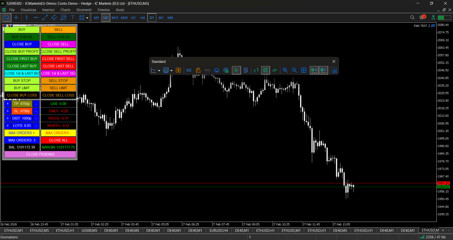 Automatisierte Funktionen (Martingale, Trailing Stop, Breakeven) laufen im Hintergrund auf der Grundlage Ihrer Einstellungen.