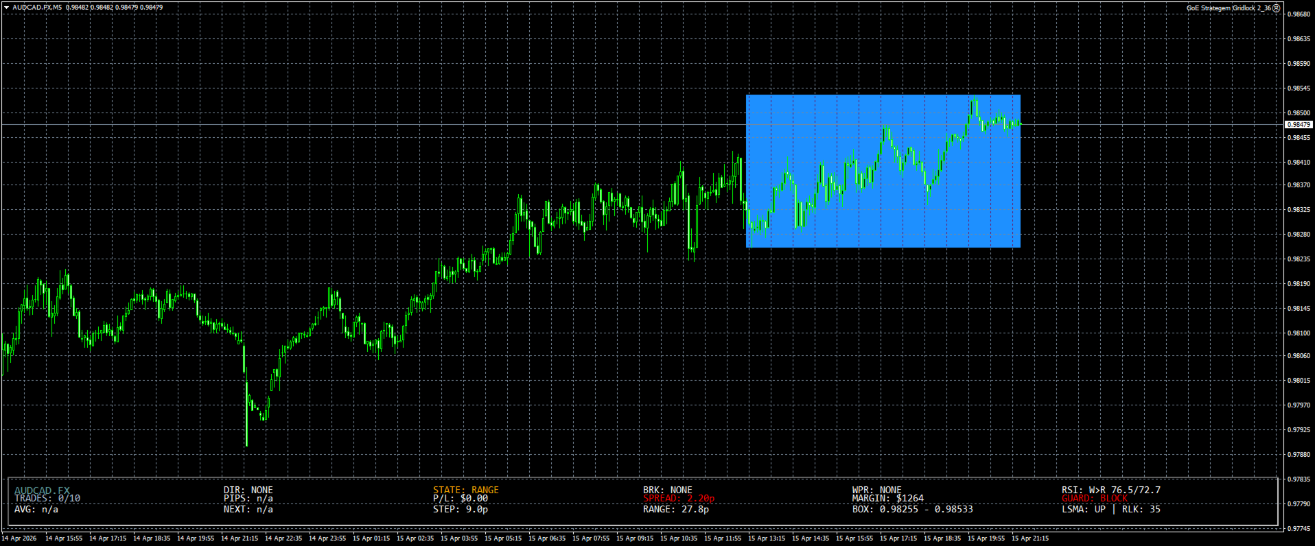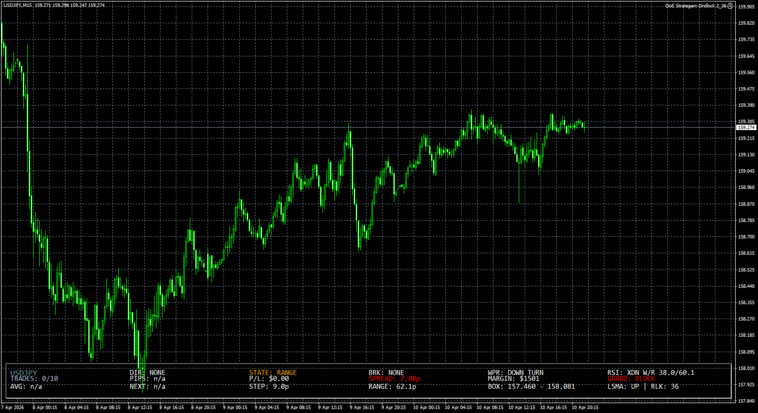 GoE Stratagem Gridlock v2.36 ist ein adaptives Grid-Trading-System, das für Händler entwickelt wurde, die ein strukturiertes Basket-Management anstelle von zufälligem Trade-Stacking wünschen.