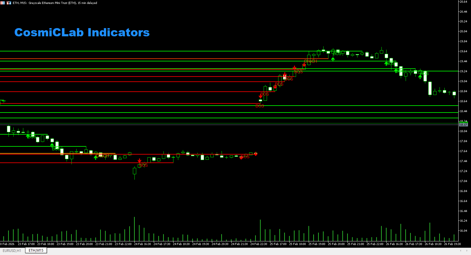 CosmiCLab SMC STABLE ist ein professioneller, auf dem Smart Money Concept basierender Marktstrukturindikator für MetaTrader 5.